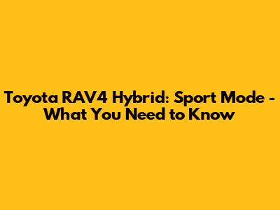 Toyota RAV4 Hybrid: Sport Mode - What You Need To Know