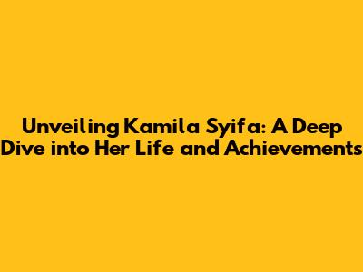 Unveiling Kamila Syifa: A Deep Dive Into Her Life And Achievements