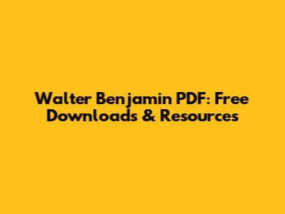 Walter Benjamin PDF: Free Downloads & Resources